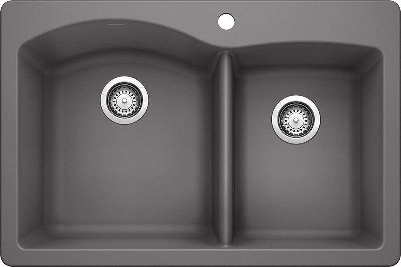 Diamond 1-3/4 Double Bowl Drop-In or Undermount Kitchen Sink, 33" X 22"- Cinder