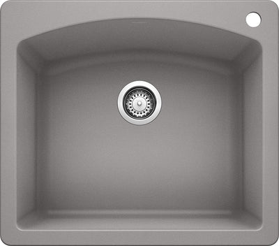 Diamond Bar Drop-In or Undermount Kitchen Sink, 25" X 22" - Metallic Gray