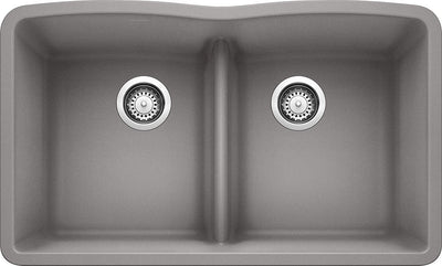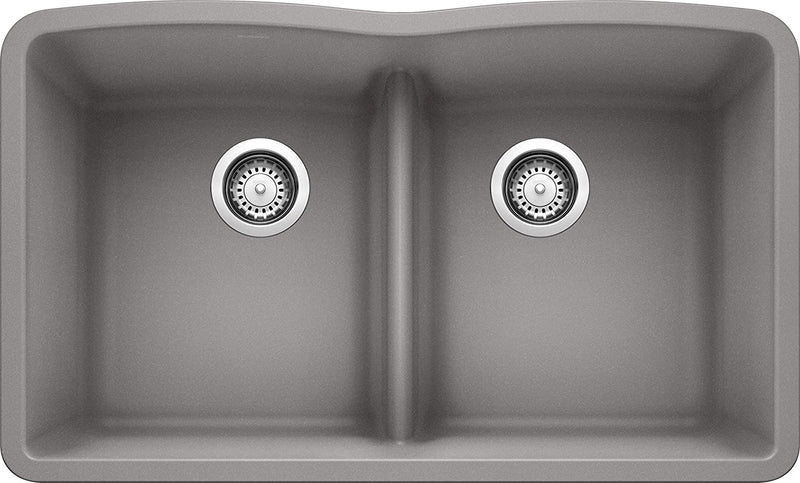 Both an expression of your individual style, and a testament to BLANCO's unsurpassed quality and craftsmanship - a variety of shape, sizes and features combine to bring you the DIAMOND collection. Designed for the hardworking kitchen, this double bowl kitchen sink has two equal bowls. Every detail has been considered, from the large bowl capacity to the easy-to-clean, durable patented rock hard SILGRANIT surface, which reflects the natural look of stone. The BLANCO DIAMOND 50/50 DOUBLE BOWL KITCHEN SINK WITH LOW DIVIDE also features a functional low divide, which accommodates large pots, while keeping cleaning and prep separate. The DIAMOND kitchen sink features a smooth surface that is resistant to chips, scratches and heats up to 536°F. Even a fork or the bottom of a hot pan can't damage BLANCO SILGRANIT sinks. The colorful, non-porous surface also makes the bowl resistant from all stains, household acids and alkali solutions as well as easy-to-clean.