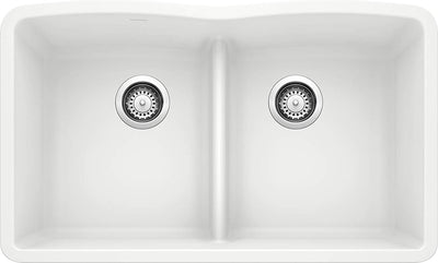 Both an expression of your individual style, and a testament to BLANCO's unsurpassed quality and craftsmanship - a variety of shape, sizes and features combine to bring you the DIAMOND collection. Designed for the hardworking kitchen, this double bowl kitchen sink has two equal bowls. Every detail has been considered, from the large bowl capacity to the easy-to-clean, durable patented rock hard SILGRANIT surface, which reflects the natural look of stone. The BLANCO DIAMOND 50/50 DOUBLE BOWL KITCHEN SINK WITH LOW DIVIDE also features a functional low divide, which accommodates large pots, while keeping cleaning and prep separate. The DIAMOND kitchen sink features a smooth surface that is resistant to chips, scratches and heats up to 536°F. Even a fork or the bottom of a hot pan can't damage BLANCO SILGRANIT sinks. The colorful, non-porous surface also makes the bowl resistant from all stains, household acids and alkali solutions as well as easy-to-clean.
