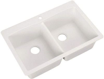 Diamond Equal Double Bowl Drop-In or Undermount Kitchen Sink, 33" X 22" - White