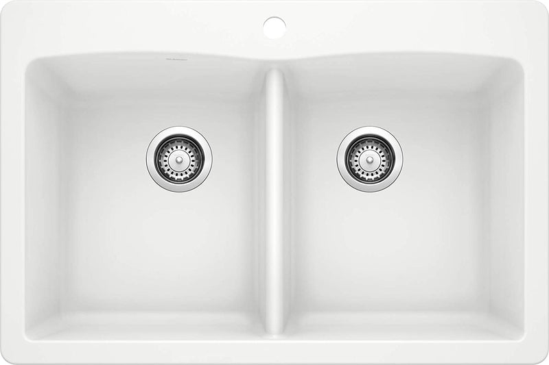 Both an expression of your individual style, and a testament to BLANCO's unsurpassed quality and craftsmanship - a variety of shape, sizes and features combine to bring you the DIAMOND collection. Designed for the hardworking kitchen, this double bowl kitchen sink has two equal bowls. Every detail has been considered, from the large bowl capacity to the easy-to-clean, durable patented rock hard SILGRANIT surface, which reflects the natural look of stone. The BLANCO DIAMOND 50/50 DOUBLE BOWL DROP-IN OR UNDERMOUNT KITCHEN SINK accommodates large pots, while keeping cleaning and prep separate. The DIAMOND kitchen sink features a smooth surface that is resistant to chips, scratches and heats up to 536°F. Even a fork or the bottom of a hot pan can't damage BLANCO SILGRANIT sinks. The colorful, non-porous surface also makes the bowl resistant from all stains, household acids and alkali solutions as well as easy-to-clean.