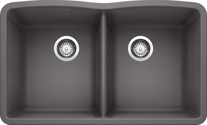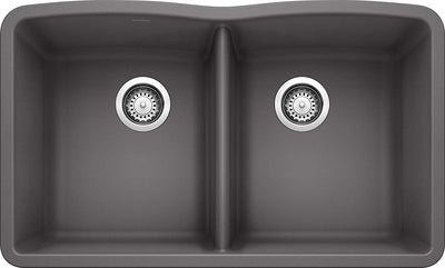 Both an expression of your individual style, and a testament to BLANCO's unsurpassed quality and craftsmanship - a variety of shape, sizes and features combine to bring you the DIAMOND collection. Designed for the hardworking kitchen, this double bowl kitchen sink has two equal bowls. Every detail has been considered, from the large bowl capacity to the easy-to-clean, durable patented rock hard SILGRANIT surface, which reflects the natural look of stone. The BLANCO DIAMOND 50/50 DOUBLE BOWL KITCHEN SINK accommodates large pots, while keeping cleaning and prep separate. The DIAMOND kitchen sink features a smooth surface that is resistant to chips, scratches and heats up to 536°F. Even a fork or the bottom of a hot pan can't damage BLANCO SILGRANIT sinks. The colorful, non-porous surface also makes the bowl resistant from all stains, household acids and alkali solutions as well as easy-to-clean.