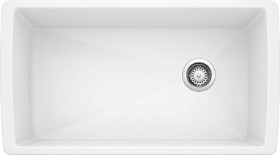 Diamond Super Single Undermount Kitchen Sink, 33.5" X 18.5"- White