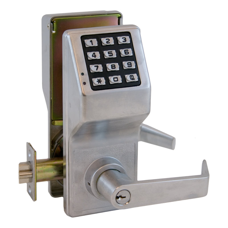 - KEYPAD: All metal, 12 button programmable for multi-level access functions including group or individual user codes, master and management codes, passage and emergency or service code, lockout and remote override capability and allowable entry time from 5 to 20 seconds. 4 Different keypad tones and keypad may be silenced