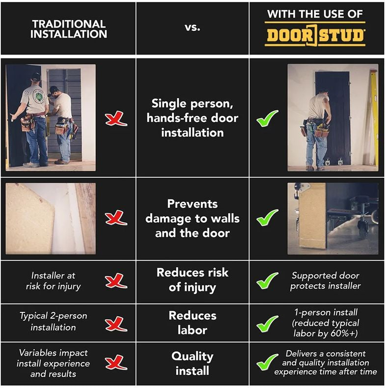 - Increases Efficiency: Single person, hands-free door installation & handling tool