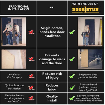 - Versatile: Works with 1-3/8″ and 1-3/4″ pre-hung or slab doors weighing up to 300lbs (136.08 kg) (Door Stud Pro-Series)