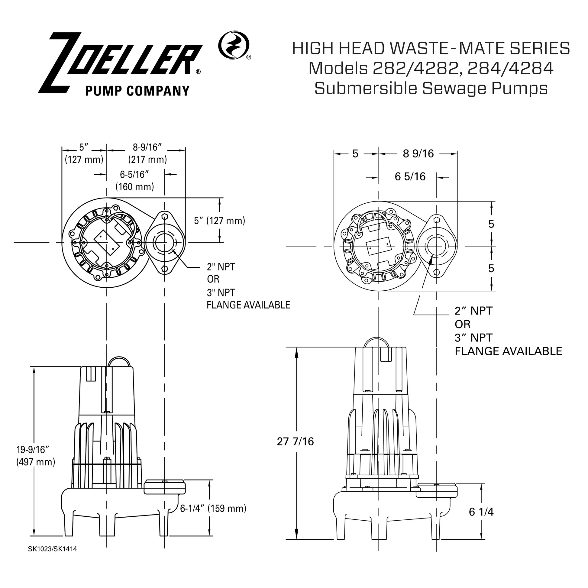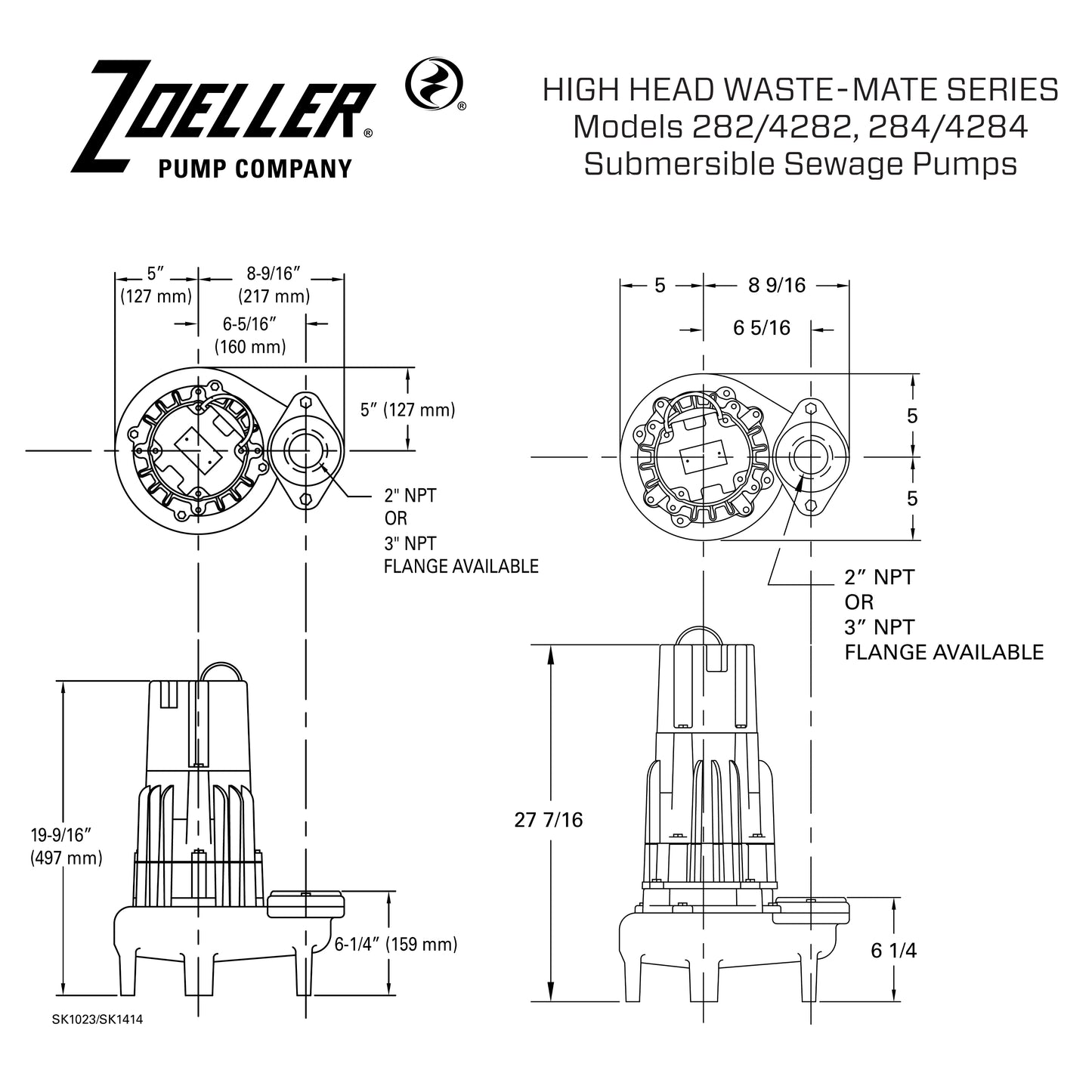 Zoeller 280 Series - 282-0004 230-Volt 1/2 Horse Power Model E282 Waste-Mate Non-Automatic Cast Iron Single Phase Submersible Sewage/Effluent Pump