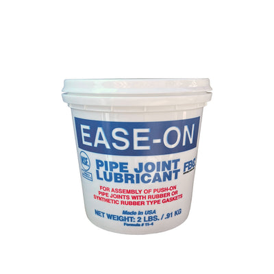 Ease-On is a non-hazardous lubricant formulated from a biodegradable blend of lubricity enhancers and soaps. Mating of abutting pipes forces the paste into cavities, thus providing the needed lubrication to complete the coupling and seal the joint. The soap-based lubricant does not dry out when gaskets are stored in sealed plastic containers or bags.