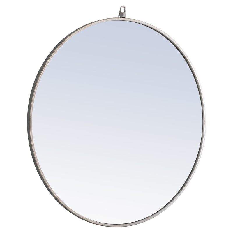 MR4059S Rowan 32" x 32" Metal Framed Round Mirror with Decorative Hook in Silver