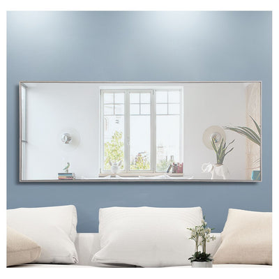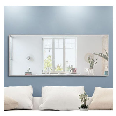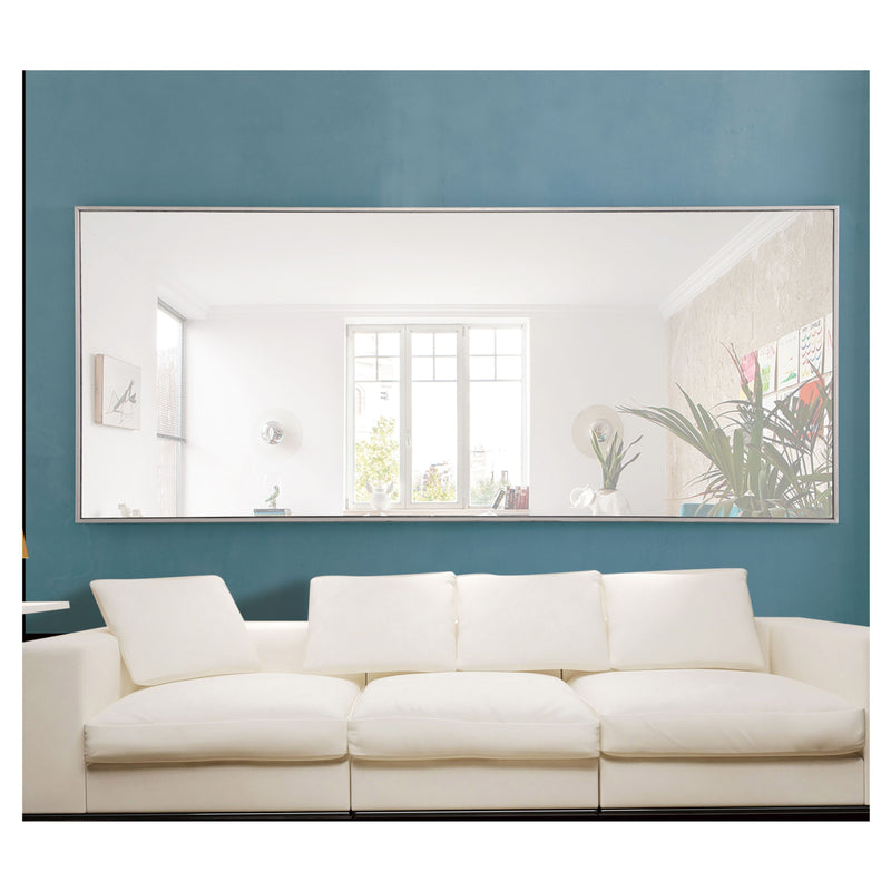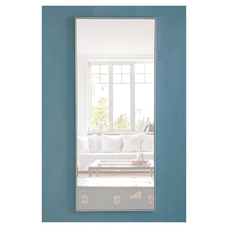 The classic clean and straight lines of this large rectangular mirror inSilver finish, slightly antiqued, provide you with a timeless and elegant look to accent any room, hallway or over a double vanity in your home or office, featuring an ultra-thin metal frame in deep profile, refecting a minimalist's design and industrial styling. To ensure your home safety, we uses metal hanger bar that are securely welded to the back of the metal frame. We recommend using suitable heavy duty picture/mirror hooks, selecting the best type of fixing for the particular wall you wish to hang the mirror on. Measurement: 30x72, hang vertical or horizontal.