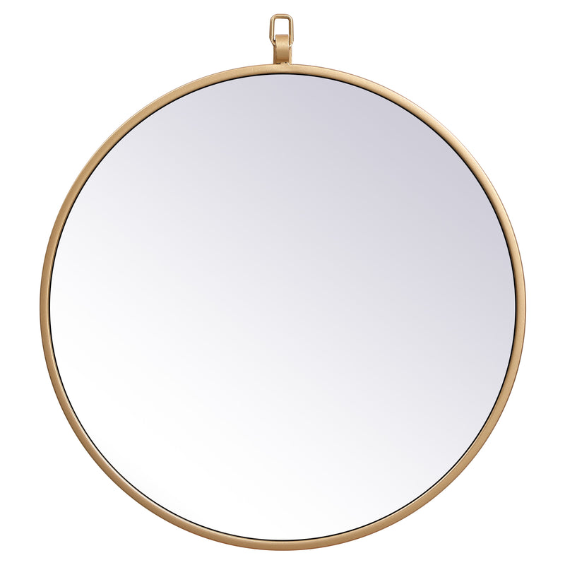 MR4718BR Rowan 18" x 18" Metal Framed Round Mirror with Decorative Hook in Brass