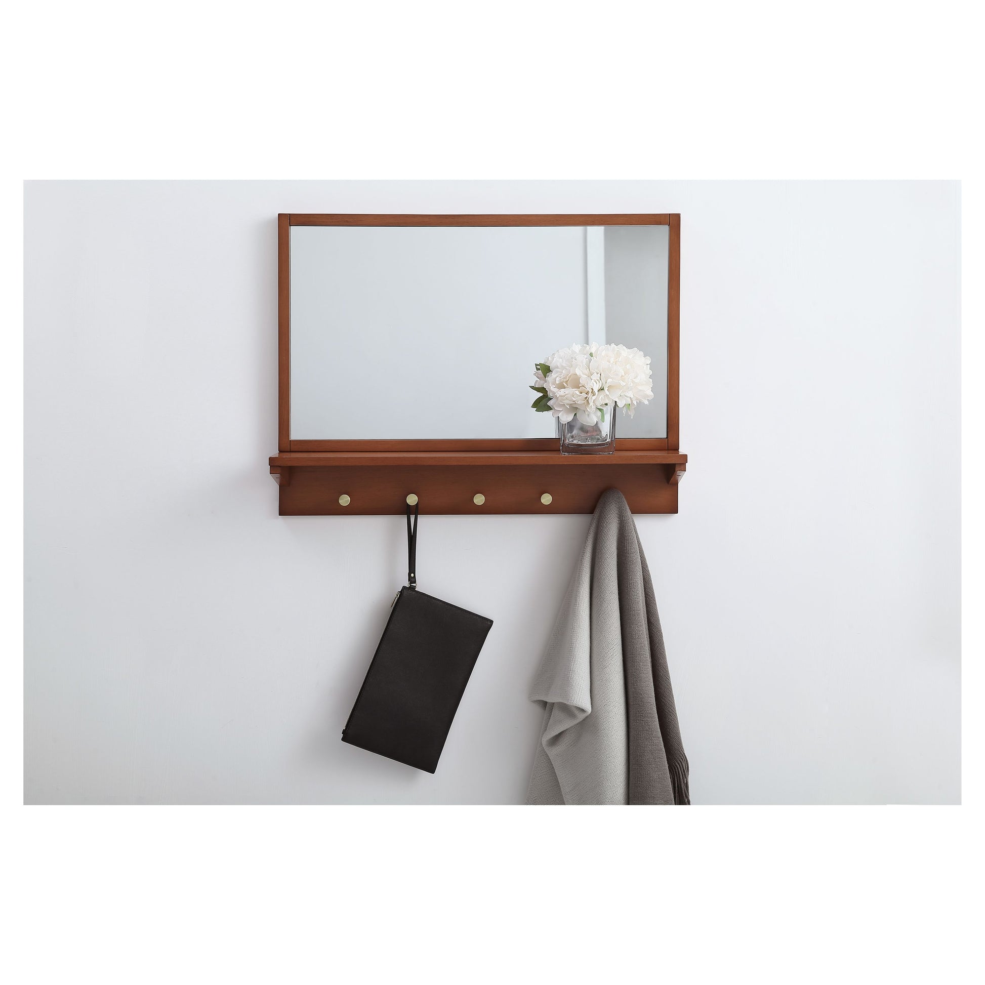 Elle 28" x 21" Entryway Mirror with Brass Hooks in Pecan