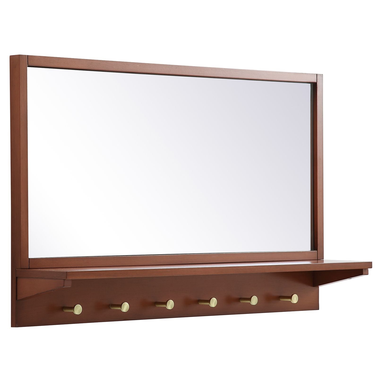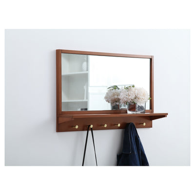Elle 34" x 21" Entryway Mirror with Brass Hooks in Pecan