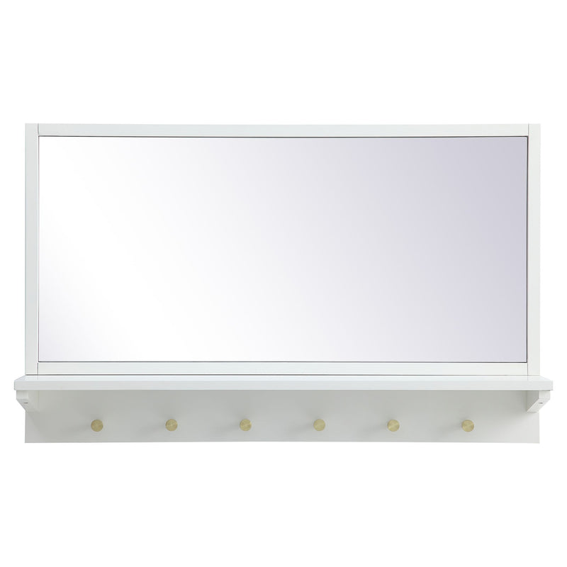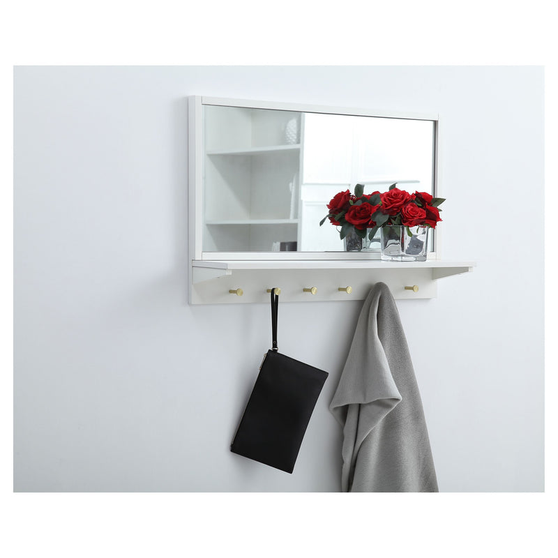 Elle 34" x 21" Entryway Mirror with Brass Hooks in White