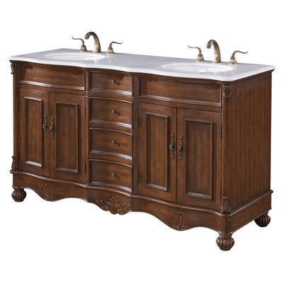 - Combining an authentic white marble vanity top"with light brown veining through the natural stone, which compliments the handpainted teak finish cabinet"oval white porcelain undermount sink, distinctively carved and turned solid wood bun feet, and antique bronze finish knobs, this rich and appealing vanity is a testament to refinement and style.