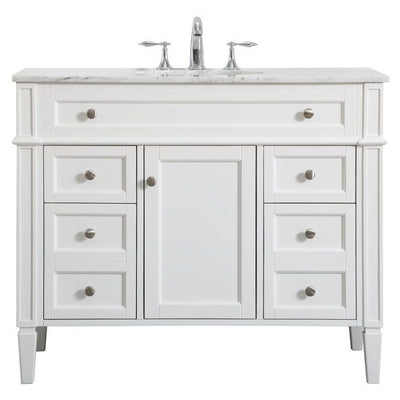 - Comes with an undermount porcelain sink and a carrara white marble vanity top