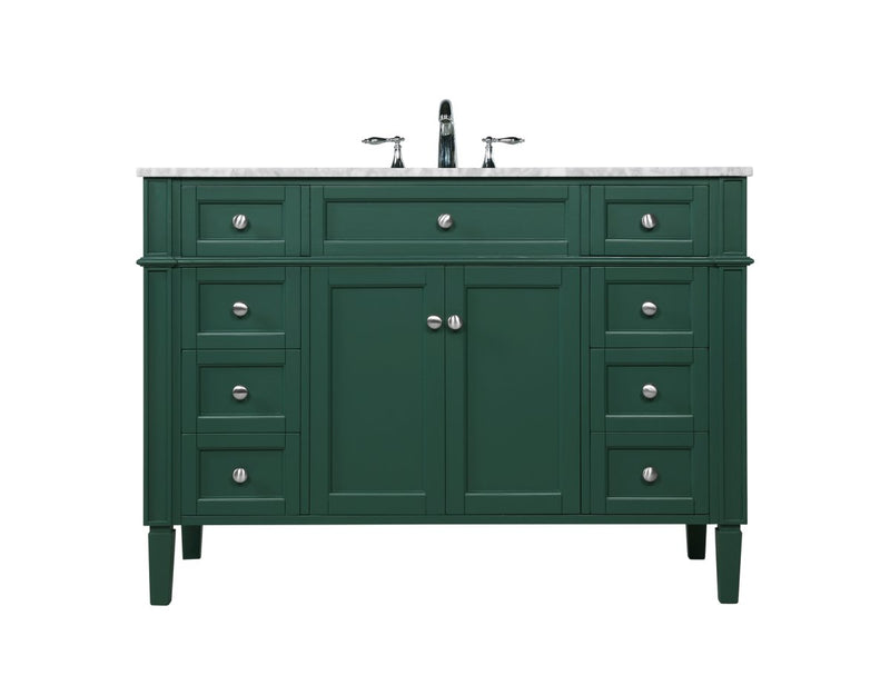 - Comes with an undermount porcelain sink and a carrara white marble vanity top