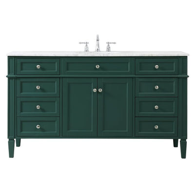 - Comes with an undermount porcelain sink and a carrara white marble vanity top