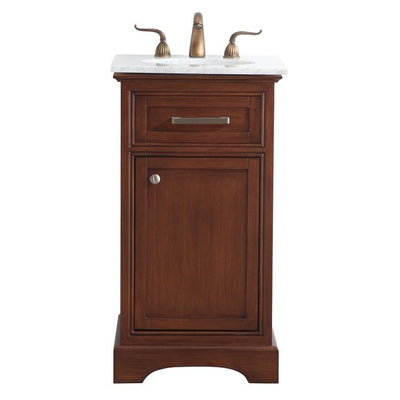 From its Italian Carrara white marble top to its contemporary style hand-painted teak cabinet, this member of our "Americana" vanity collection is sure to enhance either your home or office bathroom. Beneath its lustrous, natural marble top and oval, white porcelain under-mount sink, a handsome single door cabinet with a shelf inside for all your bathroom essentials, highlighted with recessed panel doors, brushed steel bar handle and knobs, stands on a strong solid base. A wonderful balance of simplicity and practical function! Measurements: W19"xD19"xH35"