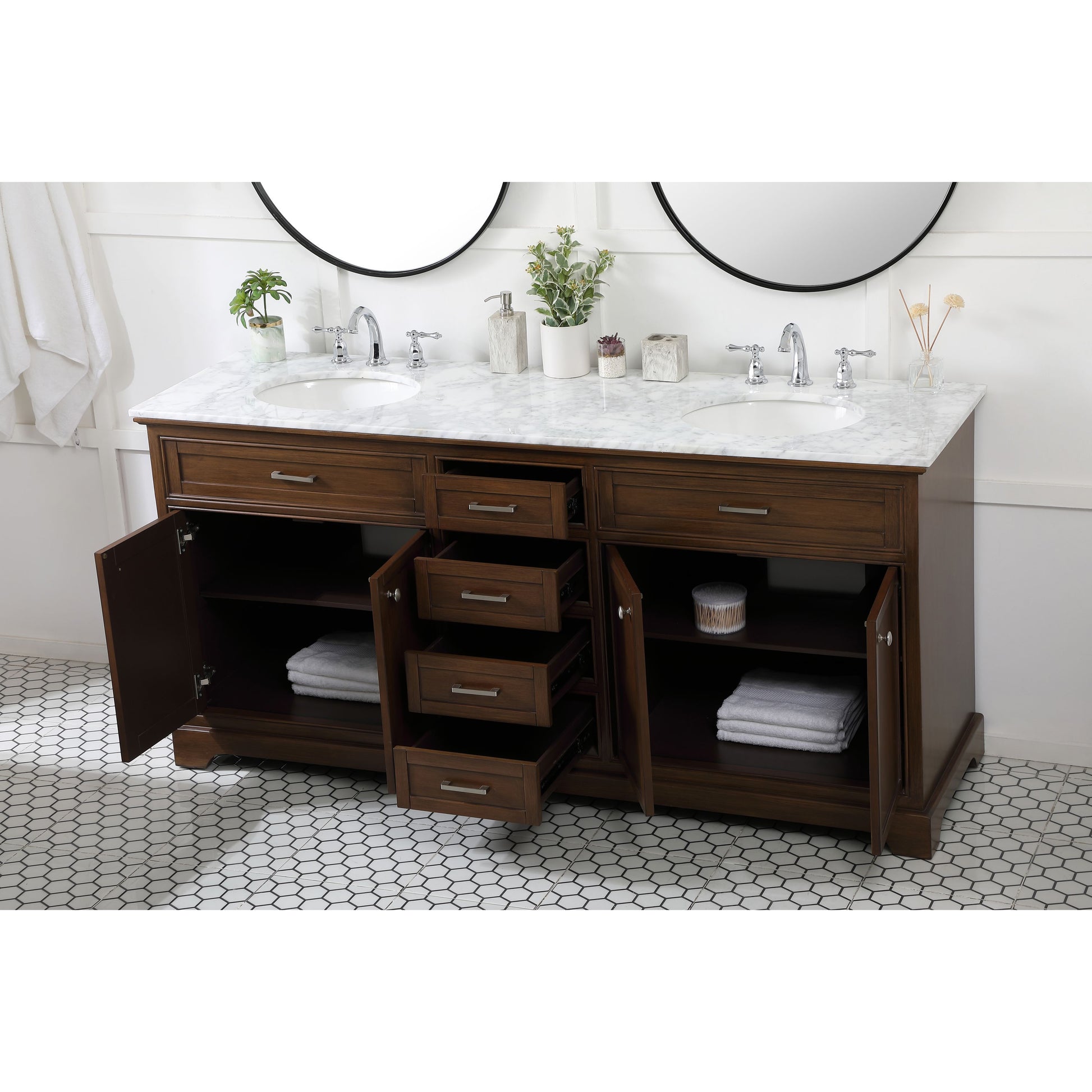 - Comes with an undermount porcelain sink and a carrara white marble vanity top