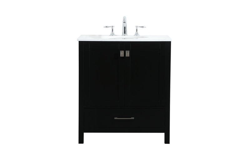- Comes with an undermount porcelain sink and a durable calcatta quartz stone top