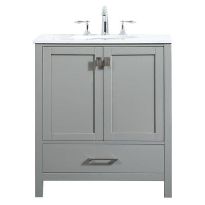 Never compromise beauty--the Irene collection stunning vanity in this finish will add lovely sophistication and complement any bathroom or powder room, while utilizing its charm and function to provide you with ample storage spaces. Brushed nickel pulls gently adorn the minimalist cabinet doors and drawers at the base, allowing for you to store away your bathroom essentials. The calcatta quartz countertop, porcelain undermount sink, dignified subtle engravings on the side edges, and squared legs all come together to create contemporary beauty. Work with your space, and design a beautiful room, no matter the size.