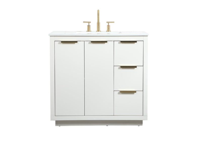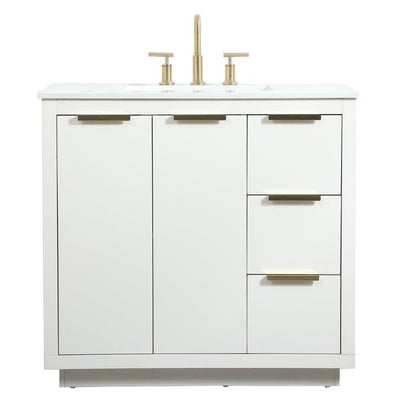 The Blake collection vanity cabinet will be a modern furniture statement piece in your bathroom. Our color combination creates a calming atmosphere in the room. The gold handles bring a vibrant touch to balance the vanity. With the simplistic clean lines, the cabinet catches eyes with its beautiful smooth surface. Open the cabinet doors to store what you desire and make use of the spacious area. Gently close the door and the soft closing glides will quietly closes the door. To top it off, the calcatta quartz adds a luxury and modern finish to the durable stonetop.