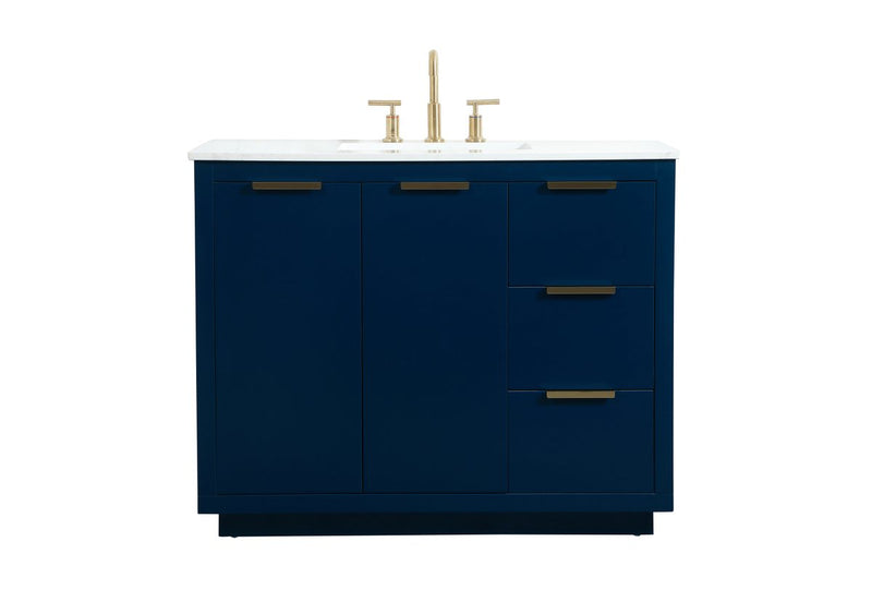 The Blake collection vanity cabinet will be a modern furniture statement piece in your bathroom. Our color combination creates a calming atmosphere in the room. The gold handles bring a vibrant touch to balance the vanity. With the simplistic clean lines, the cabinet catches eyes with its beautiful smooth surface. Open the cabinet doors to store what you desire and make use of the spacious area. Gently close the door and the soft closing glides will quietly closes the door. To top it off, the calcatta quartz adds a luxury and modern finish to the durable stonetop.