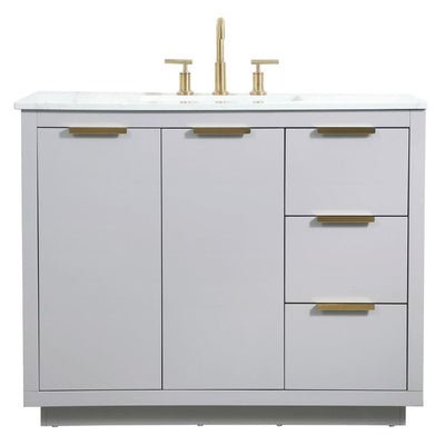 The Blake collection vanity cabinet will be a modern furniture statement piece in your bathroom. Our color combination creates a calming atmosphere in the room. The gold handles bring a vibrant touch to balance the vanity. With the simplistic clean lines, the cabinet catches eyes with its beautiful smooth surface. Open the cabinet doors to store what you desire and make use of the spacious area. Gently close the door and the soft closing glides will quietly closes the door. To top it off, the calcatta quartz adds a luxury and modern finish to the durable stonetop.