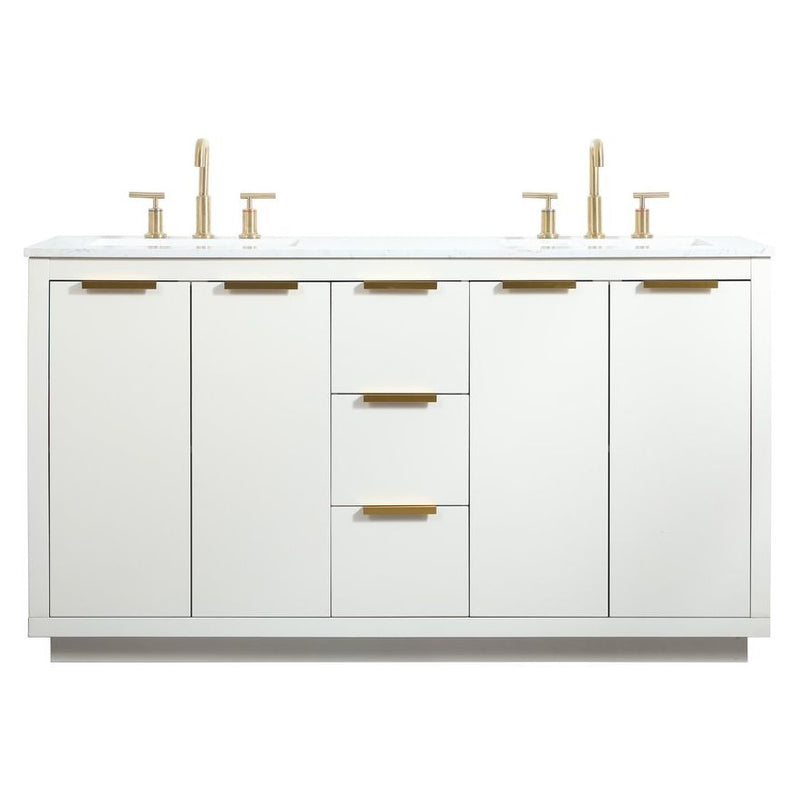The Blake collection vanity cabinet will be a modern furniture statement piece in your bathroom. Our color combination creates a calming atmosphere in the room. The gold handles bring a vibrant touch to balance the vanity. With the simplistic clean lines, the cabinet catches eyes with its beautiful smooth surface. Open the cabinet doors to store what you desire and make use of the spacious area. Gently close the door and the soft closing glides will quietly closes the door. To top it off, the calcatta quartz adds a luxury and modern finish to the durable stonetop.