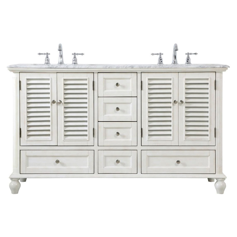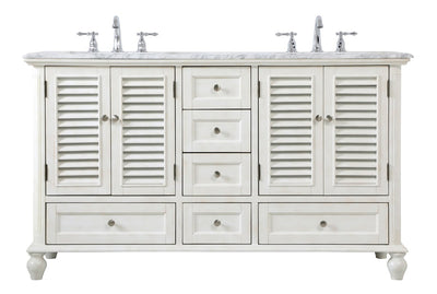 Rhodes 60" Double Bathroom Vanity in Antique White