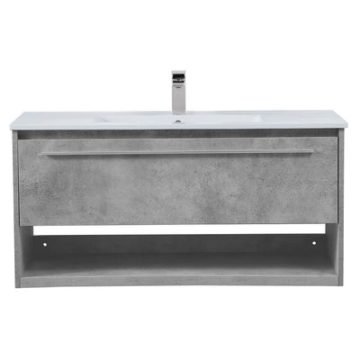 Save space and make your bathroom appear bigger with this 40" floating vanity in a concrete grey finish. Its minimal design will have you in awe, while its clean lines will leave your room feeling fresh and uncluttered. The single u-drawer pulls out for storage while the open space below allows you to place extra towels or various other essentials.