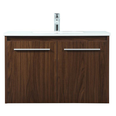 Save space and make your bathroom appear bigger with this floating vanity that comes in several finishes. Its minimal design will have you in awe, while its clean lines will leave your room feeling fresh and uncluttered. The single cabinet opens with soft closing doors that allows for storage to place extra towels or various other essentials. Its low maintenance and durable quartz top will surely last through many washes.