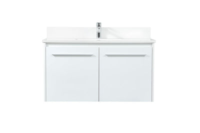 Save space and make your bathroom appear bigger with this floating vanity that comes in several finishes. Its minimal design will have you in awe, while its clean lines will leave your room feeling fresh and uncluttered. The single cabinet opens with soft closing doors that allows for storage to place extra towels or various other essentials. Its low maintenance and durable quartz top will surely last through many washes. Comes with a matching backsplash to help protect your bathroom wall.