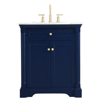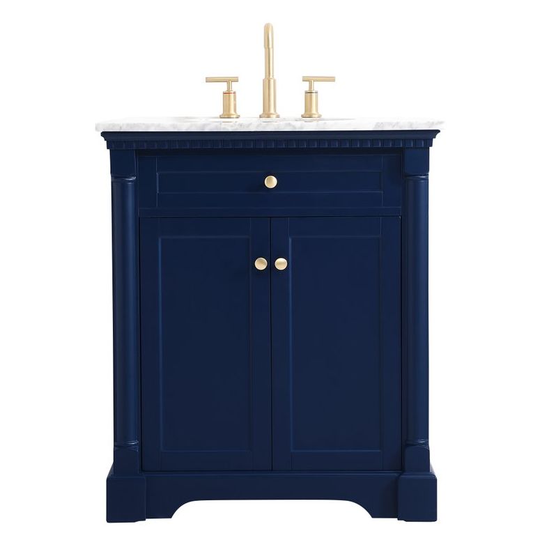 Make the most of your space with this traditional style bathroom vanity. Its traditional style is able to complement many aesthetics, natural marble countertop, and the round brushed gold knobs that sits above the soft closing doors, allowing you to store an assortment of bathroom essentials. The lower shelf makes it the perfect space to hold new towels for your guests. This compact vanity ensures both form and function in your bathroom or powder room for you and your guests.