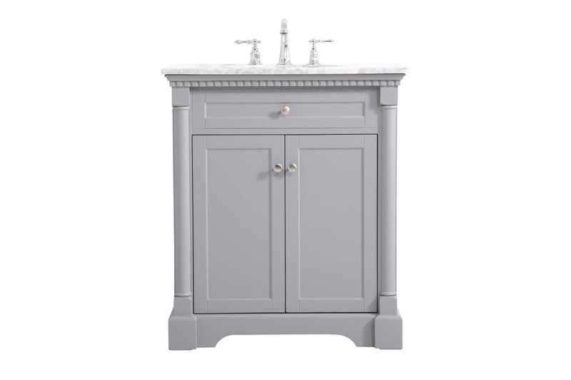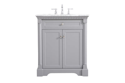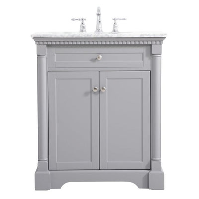 Make the most of your space with this traditional style bathroom vanity. Its traditional style is able to complement many aesthetics, natural marble countertop, and the round brushed nickel knobs that sits above the soft closing doors, allowing you to store an assortment of bathroom essentials. The lower shelf makes it the perfect space to hold new towels for your guests. This compact vanity ensures both form and function in your bathroom or powder room for you and your guests.