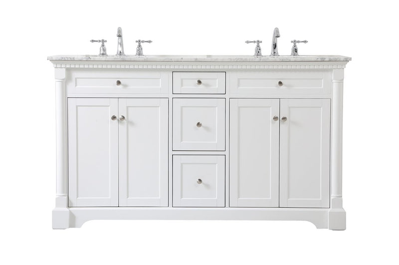 Make the most of your space with this traditional style bathroom vanity. Its traditional style is able to complement many aesthetics, natural marble countertop, and the round brushed nickel knobs that sits above the soft closing doors, allowing you to store an assortment of bathroom essentials. The lower shelf makes it the perfect space to hold new towels for your guests. This compact vanity ensures both form and function in your bathroom or powder room for you and your guests.