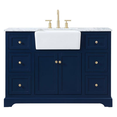 Make the most of your space with this farmhouse style bathroom vanity. Complements well with its beautiful finish, carrara white marble countertop, and the contemporary slender handle bar that sits on the functional drawers with soft closing mechanism, allowing you to store an assortment of bathroom essentials. The lower shelf makes it the perfect space to hold new towels for your guests. This stylish vanity ensures both form and function in your bathroom for you and your guests.