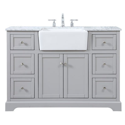 Make the most of your space with this farmhouse style bathroom vanity. Complements well with its beautiful finish, carrara white marble countertop, and the contemporary slender handle bar that sits on the functional drawers with soft closing mechanism, allowing you to store an assortment of bathroom essentials. The lower shelf makes it the perfect space to hold new towels for your guests. This stylish vanity ensures both form and function in your bathroom for you and your guests.