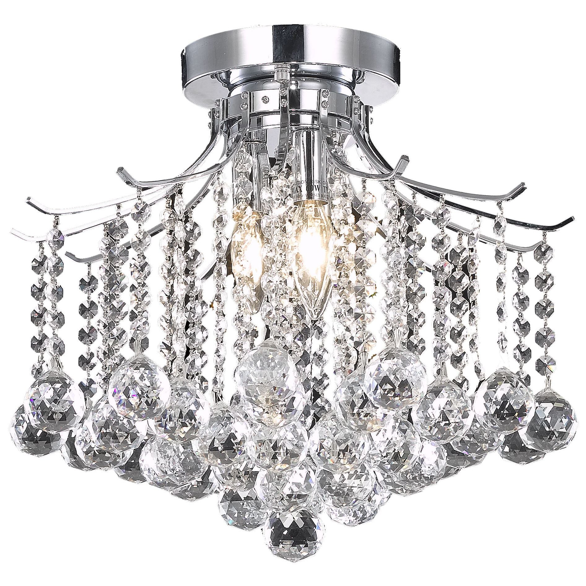 The Amelia collection sparkles with an extraordinary display of faceted Crystal balls dangling from strands of octagon Crystals, creating the illusion of a shimmering cascade of ornamentation pouring from a sleek metal canopy. These fixtures would be a commanding visual presence in any room, and will fit comfortably in smaller spaces.