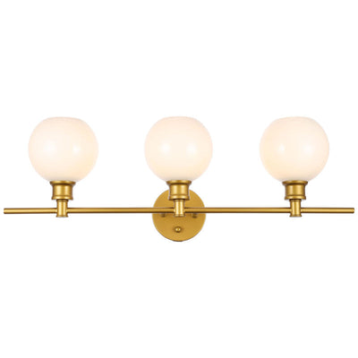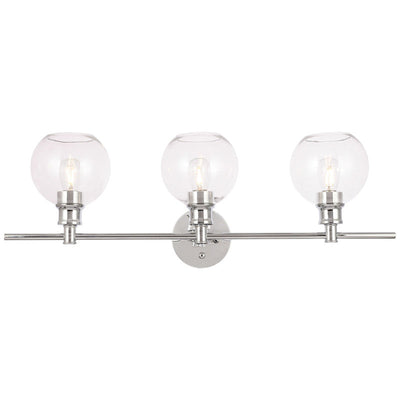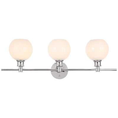 The Collier Collection of lights will be sure to have your guests admire your modern sense of style with the beautiful simplicity of its shape and form. The clean lines of the ball shaped shades create the juxtaposition of intricate simplicity, achieving a style that has both form and function. This wall lamp can be oriented facing up or down, but will always illuminate your room. Available in a brass, chrome, or black finish with either a clear or frosted ball glass shade, it is the perfect wall lamp to enhance your bathroom, foyer, or hallways, allowing you to always live a chic and fashionable lifestyle (light bulbs not included).