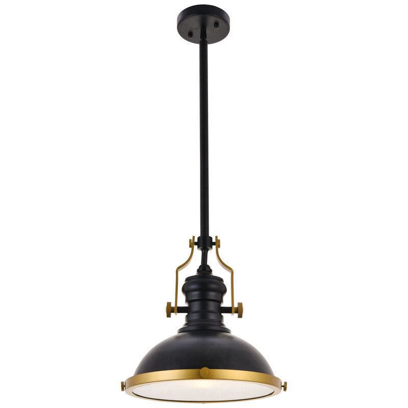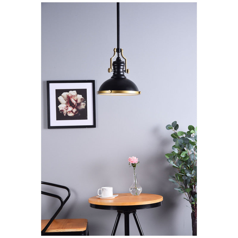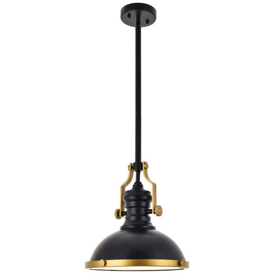 Eamon collection hanging fixtures will illuminate your workspace in a kitchen, office, studio, or workshop with Victorian vibes. An Iron frame with rounded mounting fixture features a hemispherical shade in a two-toned matte black and brass finish. The yoked joint and bolted pin assembly adds intricacy and emphasizes the vintage charm of this versatile design.