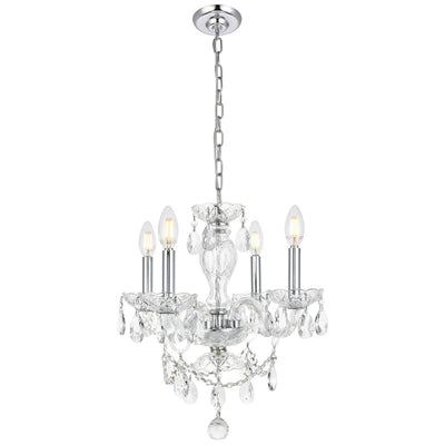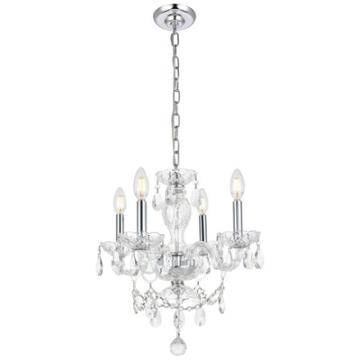 The Elle Collection is an exquisite ceiling light to enhance your traditional décor or any small space that needs a touch of glamour. This chandelier features dazzling Crystal glass accents all around its chrome finished frame and hang chain.