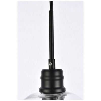 - Pendant lamp features a black and clear glass.Pendant lamp features a black and clear glass.