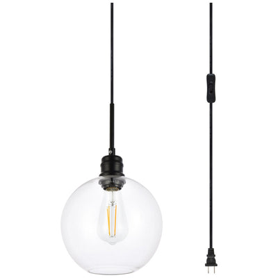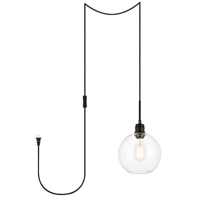 Clean lines and modern whimsy--that's the Emett Collection of plug in pendant lamps. Its single light makes it perfect for any small apartment or room space, but its also a perfect addition to any larger rooms that requires illumination, such as a dining room or living room. Available in a black or brass finish with a round clear glass shade, it won't be too hard to fit this versatile lighting fixture in your home (light bulbs not included). Comes with a 15 foot cord with an in-line on and off switch. Also includes two swag hooks. Simply hang this piece on the provided swag hooks and plug it in for an effortlessly easy installation - can be hung from a sloped or vaulted ceiling.