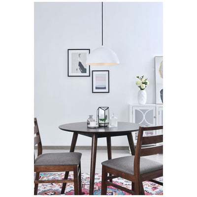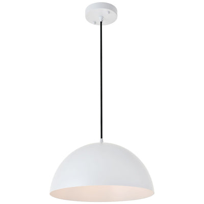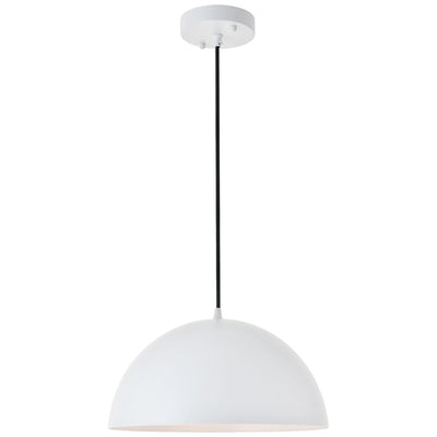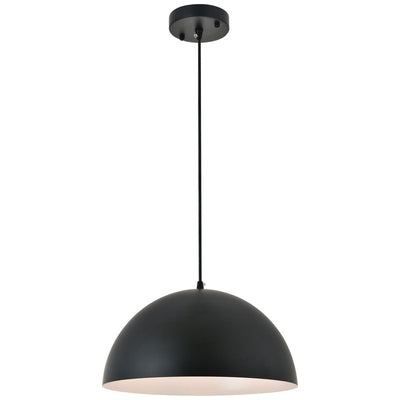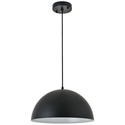The Forte collection pendant lamp will surely create a modern and bold center point for any room. The hemispherical shade with a black finish exterior and white finish interior creates a dauntless personality that will illuminate any darkness with its reliable light. Without fail, Forte will excel at brightening your home, whether it's at your entryway, living room, or dining room.