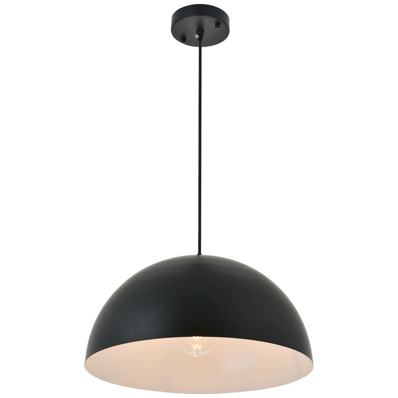 The Forte collection pendant lamp will surely create a modern and bold center point for any room. The hemispherical shade with a black finish exterior and white finish interior creates a dauntless personality that will illuminate any darkness with its reliable light. Without fail, Forte will excel at brightening your home, whether it's at your entryway, living room, or dining room.