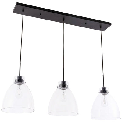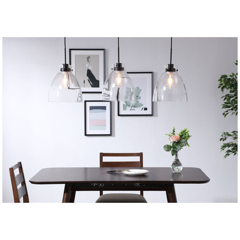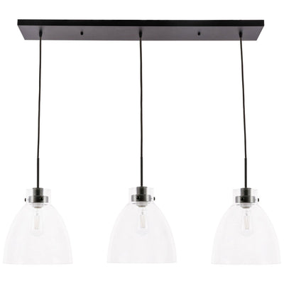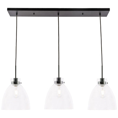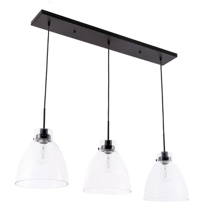 The Frey Collection pendant lamp is contemporary and the perfect lighting fixture in any home. Its urban-style design will create a contemporary aesthetic and the light can illuminate any room in your home, whether its your dining room, living room, or entry way. The three lights hang suspended from a canopy, ensuring that no corner will be left in shadow. Available in a black finish with a round hemispherical shade, brighten your home with light and contemporary style (light bulbs not included).