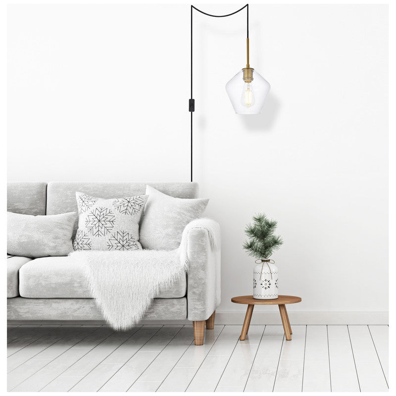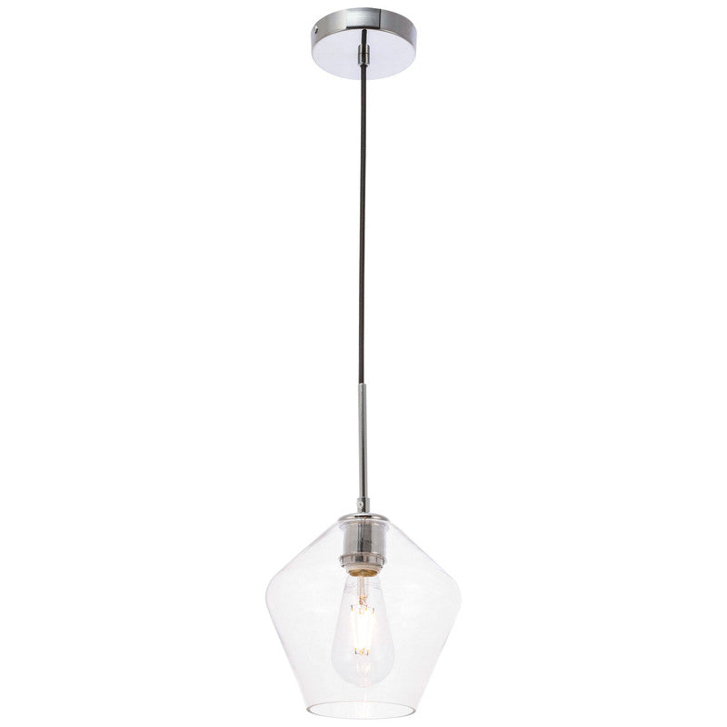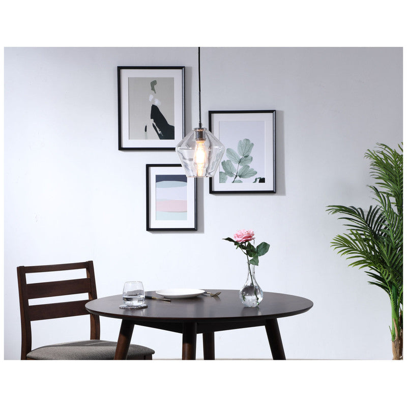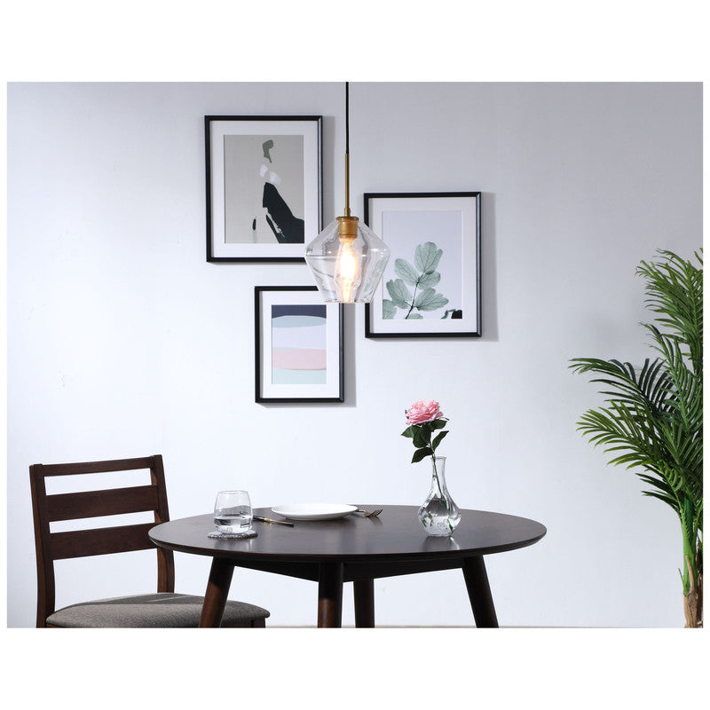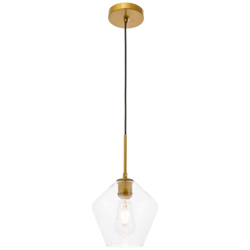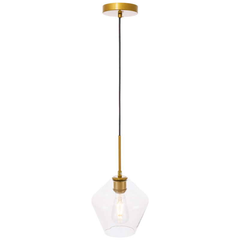 The Gene Collection of lights will be sure to have your guests admire your modern sense of style with the beautiful simplicity of its shape and form. From the solidity of the hanging cord to the clean lines that the diamond shaped shade creates, this pendant will create drama and beauty in any room of your home. Its design is both minimal enough to not take away from your style in large rooms, and stylish enough to add character in smaller spaces. Available in a brass, chrome, or black finish, with either a clear or frosted diamond glass shade, enhance your dining room, living room, or bedroom with the Gene Collection hanging pendant and live in sleek contemporary style (light bulbs not included).